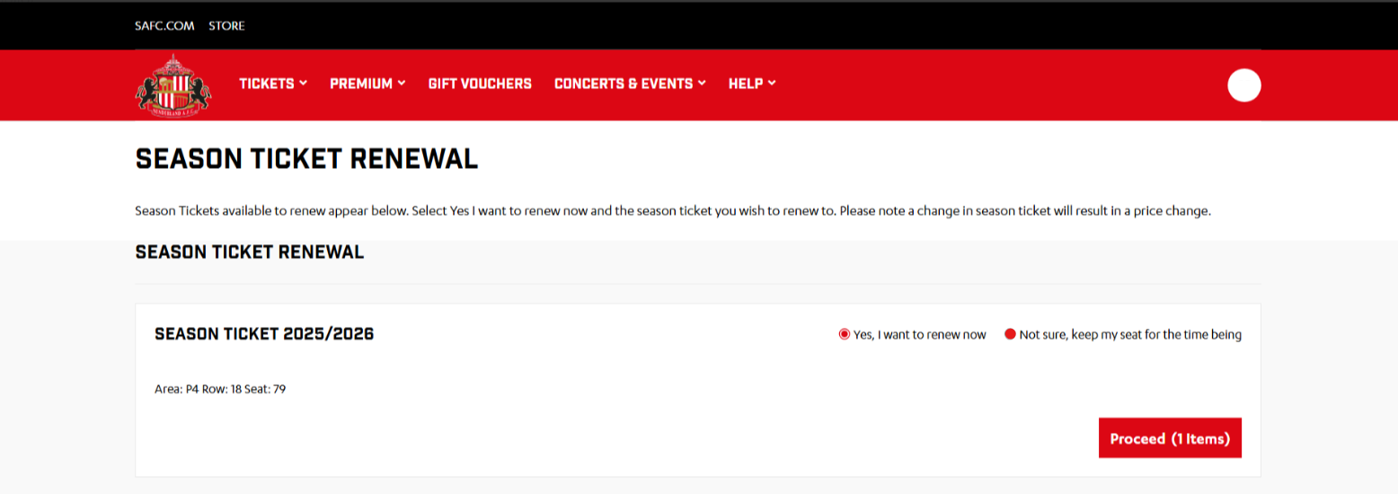 If you decide not to renew your season ticket, you’ll be given the option to select keep my seat for the time being